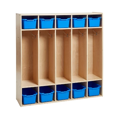 Get maximum storage in a minimal footprint with Birch Streamline Coat lockers. These durable birch wood coat lockers are a great place for kids to store their book bags, coats, lunch boxes and more. The attractive natural finish complements classrooms, preschools, bedrooms, daycares and homes for an all-around storage solution. Each locker section features two hooks for children to hang coats, book bags and other belongings. Spacious cubbies give kids plenty of storage options for binders, lunch bags and other school supplies. Unit has 10 Cubby Trays that go perfectly with our ECR4Kids Scoop Front Bins for a colorful and convenient storage solution to contain smaller items. Adult assembly required. Constructed from durable birch plywood with a clear lacquer finish that fits any contemporary aesthetic. Adult supervision recommended, do not let children climb on unit. GREENGUARD [GOLD] Certified for low VOCs, TSCA, and CPSIA compliant. At ECR4Kids, we’re committed to safety, testing and regulatory compliance to ensure our products meet or exceed industry standards. You and your kids deserve the absolute best for a brighter way to play, share, learn and grow.