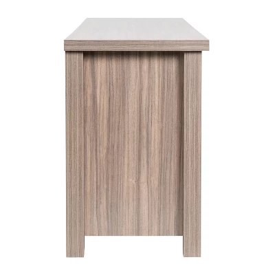 Simple, stylish and functional, the Sienna 65″ TV stand will make a name for itself in your home. Featuring six open storage spaces and the ability to support TVs up to 80,” this piece does it all. Crafted from durable laminate in an attractive wood look finish, this TV stand is as beautiful as it is practical. Convenient cable management and ample storage features help your room stay clean and organized. A beautiful addition to any new home or a fun way to refresh your current space, the Sienna offers convenience with its easy to clean surface and assembly taking an hour or less. A perfect combination of simplicity and style, the Sienna will withstand the test of time to be a lasting addition to your home decor.