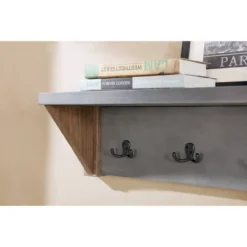 40″ Davenport Coat Hook With Shelf And Faux Concrete Bench Set Light Amber – Alaterre Furniture