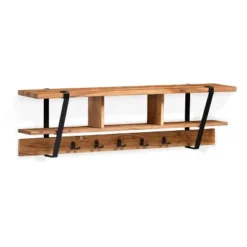 40″ Woodstock Acacia Wood With Metal Coat Hook And Bench Set Brushed Driftwood – Alaterre Furniture
