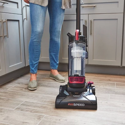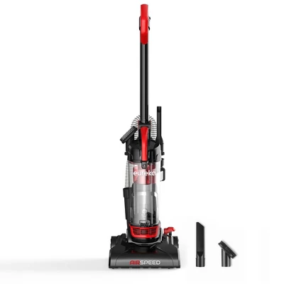 The Eureka Airspeed compact bagless upright vacuum cleaner is the powerful, lightweight cleaning solution you’ve been waiting for. Lightweight at only 7.7 lbs. yet incredibly powerful to deep clean carpets and hard floors. The 1.7L easy empty dust cup makes uninterrupted cleaning a breeze. This vacuum is packed with features including a detachable handle that connects to the hose and tools for above floor cleaning. The unit also includes a crevice tool and dusting brush that can be stored on board for easy access.