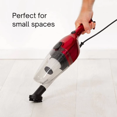 The Chilli Tempest is a powerful combination vacuum cleaner that switches from handheld to stick vacuum. It is small, lightweight, 3 lbs., and compact, for quick easy use and storage. Strong 600 watt suction picks up pet hair, dirt, crumbs, and debris. Use on hard floors, stairs, and spot clean upholstery, furniture, baseboards, and more. Large volume 500ml debris container empties with a quick-detach. Full cyclonic action separates dirt and dust through HEPA filter for clean air. Good choice for dorms, small apartments with hard floors, and tight spaces. Comes with crevice tool, brush, hose, floor head, and 2 extension wands.