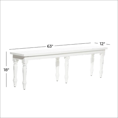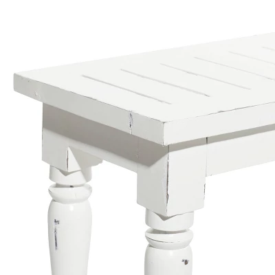 - •Wooden bench features a distressed white finish