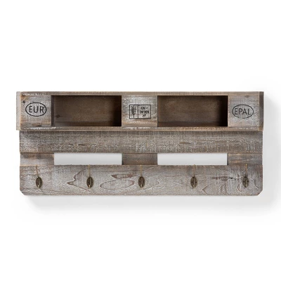 Take advantage of your entryway with the handy utility of the Ferguson wall rack. Made in China, the Ferguson is comprised of a whitewashed, gray oak finished wood frame that complements modern interiors. Five brass finished metal hooks provide support for jackets and coats, while two cubbies conveniently store keys and other outdoor necessities. Fully assembled, the Ferguson maximizes floor space by mounting to the wall of your entryway. A handy piece that radiates rustic charm, the Ferguson wall rack is an excellent solution for busy homes.