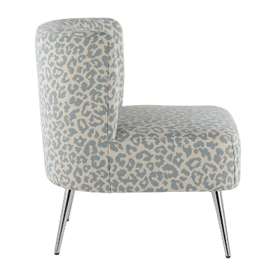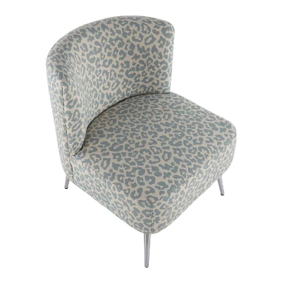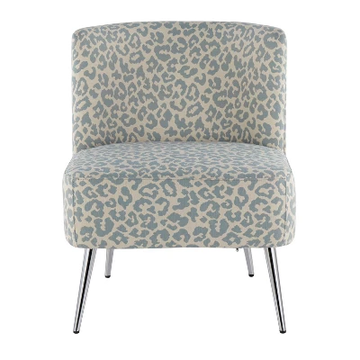 Glam up your sitting area with the beauty of the Fran Slipper Chair. Featuring a sophisticated leopard upholstery that will tie in perfectly with your contemporary decor, this ultra-comfortable padded slipper chair is complemented by tapered chrome legs. Available in a variety of color combinations, choose the color that ties in with your decor!