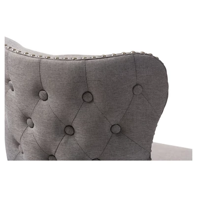 Featuring modern and contemporary design, the Gradisca upholstered swivel barstool will be a perfect addition to your kitchen or bar counter. Constructed of solid rubberwood in dark walnut finishing, the barstool will be a nice addition for your warm and cozy kitchen and dining room. Button-tufting cut out backrest, couples with silver nail heads trim around the seat back adds a touch of modern and a little of glamour to this functional barstool. Fully upholstered in polyester fabric, the upholstered barstool is padded throughout for extra comfort. Sit and enjoy a glass of martini with your loved one after a long busy day for a little chit-chat, the Gradisca will instantly create a lovely ambience for the occasions. Made in Malaysia, the barstool requires assembly.