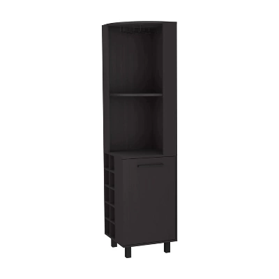 Featuring a rich Wengue finish, this piece brings elegance with its deep, sophisticated wood tone, enhancing any room¡¯s aesthetic. It includes four spacious shelves to maximize storage and organization, along with a built-in glass holder for secure stemware storage and a wine rack for stylishly displaying favorite bottles. Combining functionality and elegance, it is a perfect addition to home bars, dining rooms, or living spaces, keeping essentials organized while adding a touch of sophistication.