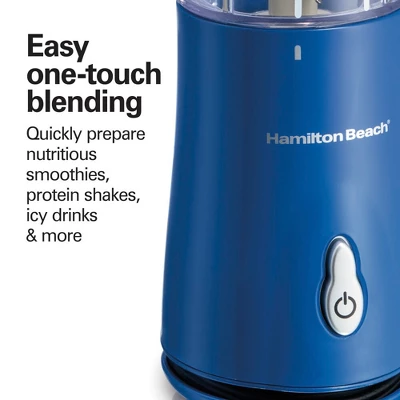 Making your morning smoothie just got easier with the Hamilton Beach Single Serve Blender. This compact blender is ready to whip up shakes, smoothies, salad dressings and more. A single button makes blending easy, while the 14-ounce blending jar transforms into a travel cup with an included drinking lid. The jar and lid are dishwasher safe, the stainless steel blades are sturdy and durable, and a hideaway cord makes storage a cinch.
