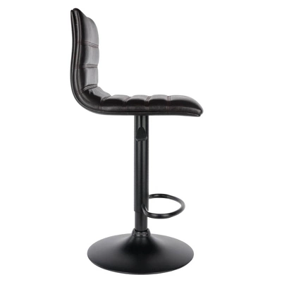 Update your interior decor with sleek style when you add the Holly Airlift Adjustable Stool from Winsome to your seating ensemble. Featuring an espresso-brown L-shaped seat, a black metal frame and a round base, this upholstered adjustable stool easily complements your existing decor with polished flair. The faux-leather upholstery and built-in footrest help provide seating comfort, while the adjustable design makes it easy for you to find your preferred height. Use this faux-leather adjustable stool anywhere from your dining room to your den to bring comfort and modern design to your living space.