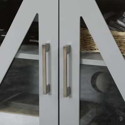 - Minimalist Style: The ideal TV table serves its purpose and looks good doing it. Our entertainment stand has framed glass doors that pair well with a variety of furniture styles.