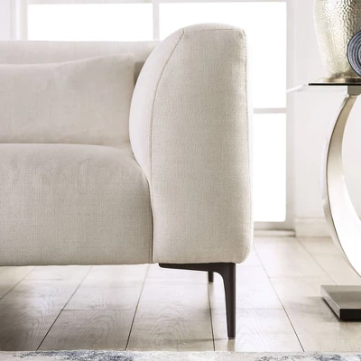 - Sturdy and tapered black metal legs, Constructed with FSC wood, metal, cotton linen blend, foam and OEKO-TEX materials