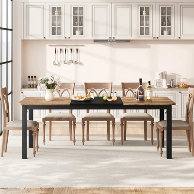 Industrial Dining Table for 6~8 People, 78.7″ Long Kitchen Table, Wood Dining Table, Kitchen & Dining Room Table, Rectangle Dining Room Table for 6