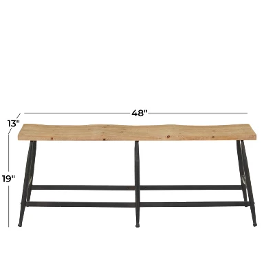 So take a load off and relax on this decorative bench. A small piece of furniture that make a big difference to give your home an instance refresh. Complement your chic and elegant indoor aesthetics with this industrial accent bench for convenient display space or added seat to your living room or bedroom space. This item ships in 1 carton. Suitable for indoor use only. This item ships fully assembled in one piece. Maximum weight limit is 250 lbs. Can accommodate 3 people. This is a single brown colored entryway bench. Industrial style.