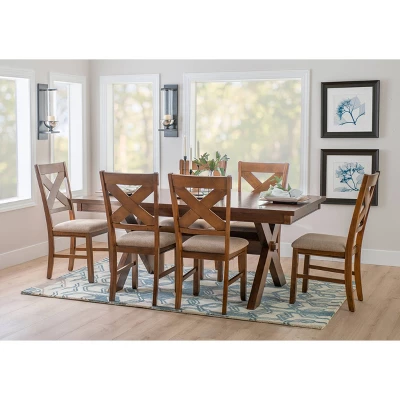 The Jackson Acacia Dining Table is a great family piece. Featuring an expansive tabletop which offers seating for many, the table also has a self-storing 18″ butterfly leaf, making it 90″. Perfect for an intimate dinner with your family to enjoy a delicious home cooked meal and the company of your loved ones, this table seats up to six. Finished in a Dark Hazelnut, the table features thick, sturdy legs in an X-design. Easy to assemble and maintain, spot or wipe clean when necessary.