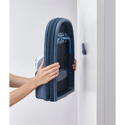 Compact ironing boards are a great option if you have limited storage space or just want to quickly iron one or two items. But this condensed board takes ironing convenience to whole new level with its innovative design. For a start, it folds neatly in half and comes with its own hanging hook that can be mounted onto a wall or door, making it really compact and easy to store. It also features a special compartment for storing your iron, which saves valuable space elsewhere and keeps everything you need for this household chore together in one place. Set-up is fast and easy too, with its quick release locking toggle and folding legs with non-slip feet. Once open, it has a generous ironing surface with corners perfectly shaped for shirts, trousers, dresses and more. It comes with an advanced, multi-layer cover with DripLockâ„¢ Technology that’s been designed to cope with larger volumes of ironing or for use with steam generator irons. This has a 100% cotton top-layer with a thick padded felt layer underneath, for super-smooth ironing. Below that is a 100% waterproof base layer to prevent any excess water from dripping. With it’s elastic edges, the cover is quick and easy to change and always fits perfectly. Replacement covers are also available. Ironing Surface 90 x 33 cm (35.4 x 13 inches). Frame guaranteed for 5 years against manufacturing defects.