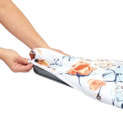 Give your trusty ironing board a new look with this floral pattern ironing board cover that features a thick foam pad for extra protection and a neater ironing process. Simply place over your standard ironing board and use the drawstring to secure in place and prevent movement. You’ll love what this simple ironing accessory can add to your home. This cover is designed to fit ironing boards that measure 15 x 54 inches. Please note this does NOT come with an ironing board.