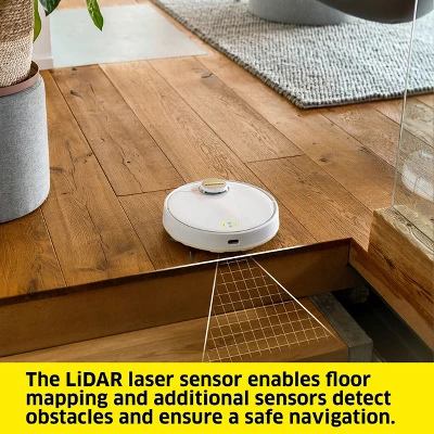 - 2-in-1 Function: The Kärcher RCV 3 Robotic Vacuum Cleaner thoroughly removes dust and dirt from carpets and hard floors. The accompanying mop function enables you to vacuum and mop the floors simultaneously