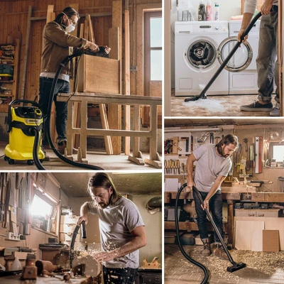The Kärcher WD 5 P Wet/Dry Vacuum Cleaner is the perfect cleaning companion for powerful and convenient performance. With its advanced features and unrivaled filtration, this vacuum is designed to deliver maximum productivity and efficiency. Made in Europe with a robust construction, it ensures durability for years of reliable use. Featuring patented filter removal technology, the Kärcher WD 5 P allows for easy and hassle-free maintenance. There is no need to remove the filter when switching between wet and dry vacuuming, providing seamless cleaning for any task. The filter is conveniently housed overhead, ensuring sealed access without recirculating dust. Equipped with a built-in blower function, this vacuum quickly and effortlessly moves dirt and debris from those hard-to-reach areas. Say goodbye to stubborn messes. The 1100-watt motor delivers superior airflow into a generous 6.6 gallons (25L) of wet or dry capacity, providing ample space for all your cleaning needs.The Kärcher WD 5 P comes with a range of accessories to enhance your cleaning experience, including an 11.5 ft. (3.5m) suction hose, (2x) 1.8 ft. (0.5m) suction tubes, a hand nozzle, a crevice nozzle, a switchable wet/dry floor nozzle, an automotive-style pleated filter, a power tool adapter, and a fleece filter bag. It’s a complete package designed to tackle various cleaning tasks with ease. With its small footprint, the Kärcher WD 5 P is designed for efficient storage, making it ideal for any space. Whether you need a shop vac, heavy-duty vacuum cleaner, or an outdoor vacuum for your patio, this versatile machine has got you covered. It’s also a reliable choice for industrial use, garage cleaning, and even water vacuuming during flooding situations.