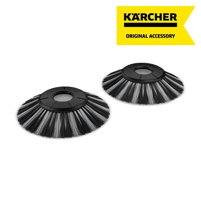 The side brushes with brush configuration that is made up of standard bristles and bristles that are three times harder are ideal for loosening and sweeping up wet waste. We recommend that you use this, for example, to sweep up leaves that have become wet from the rain and are stuck to the ground. This authentic Kärcher accessory is compatible with the S4 Twin Push Sweeper. Note that due to the stiffer bristles to pick up wet objects, the push sweeper will require slightly more effort to push with these brushes.