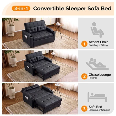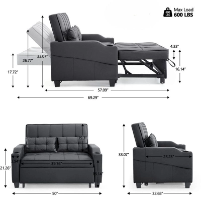 Enjoy the perfect blend of comfort and style with our double mechanical back pull-out sofa bed, designed for modern contemporary living. Featuring durable and textured cat-scratch faux leather, the bed combines vintage and modern design elements to emphasize your taste. The unique three-position adjustable back allows you to find the perfect angle for both casual reading and lazy napping. The sofa is filled with 7cm high-density sponge, which is soft and elastic, and is not easy to deform even after long time use. With a weight capacity of up to 600 pounds, it is sturdy and durable, carrying fun for the whole family. With the thoughtful design of cup holes and USB outlets, you can enjoy the convenience of watching movies without interruption. Whether it’s a spacious living room or a private media room, this sofa bed is the perfect movie-watching companion to make every family gathering or time alone infinitely more enjoyable and cozy. Own it now and start a new chapter of your quality life!