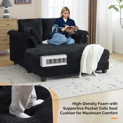 Steeped in the perfect blend of vintage and modern contemporary, our bolster velvet sofa bed in classic corduroy fabric illustrates the art of modern living. More than just a piece of furniture, it’s a private throne for movie watching in your AV room, taking comfort to a whole new level. High-density foam padding with precision spring packs ensures that every seatfall is the ultimate in enjoyment, even for hours of immersive movie watching. With a weight capacity of up to 600 pounds, it is sturdy and durable enough to meet a variety of family needs. From vintage sentiment to modern aesthetics, this sofa bed with its unique charm becomes an indispensable and stylish element in your home, making every rest a journey of taste and comfort.