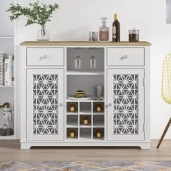3-Tier Wine Bar Cabinet With Detachable Wine Rack And Drawer