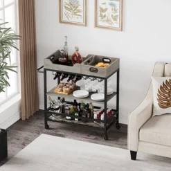 3-Tier Wine Bar Cabinet With Detachable Wine Rack And Storage Space