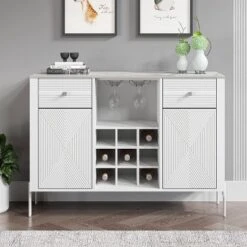 47″ Wine Cabinet With Glass Doors Feature And Silk-Screened Pattern Design – Festivo