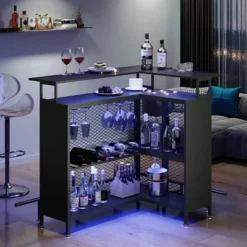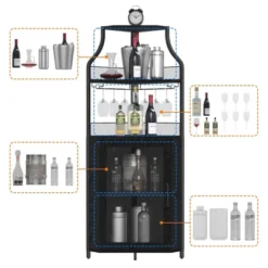 Famapy Black Wine Cabinet With A Two – Layer Semi – Open Structure.