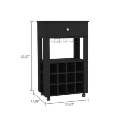 Evita Bar Cart With Twelve Built-in Wine Rack, Four Legs & One Open Shelf-14*23.6*34.9 Inch -Black