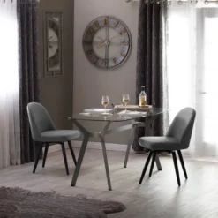 58″ Gleneagles Modern Rectangle Glass Top Dining Table Gray/Champagne/Black – HOMES: Inside + Out