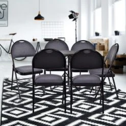 Costway Set Of 6 Folding Chairs Fabric Upholstered Padded Seat Metal Frame Home Office