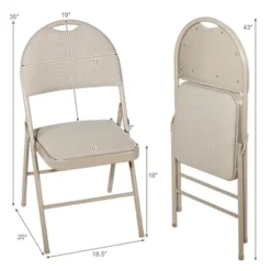 Costway Set Of 6 Folding Chairs Fabric Upholstered Padded Seat Metal Frame Home Office Grey/Beige