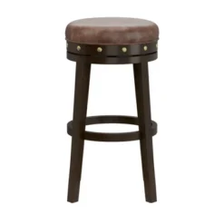 - Elegant wood swivel backless counter height stool with tufted fabric seating