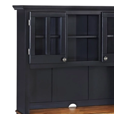 - Hutch features two wood-framed glass doors with an adjustable shelf inside