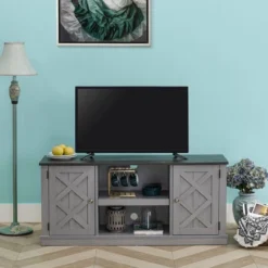54″ Farmhouse Two-Tone TV Stand For TVs Up To 65″ Gray – Home Essentials