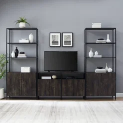 2pc Ossi Industrial Entertainment Center TV Console Set Gray – MiBasics
