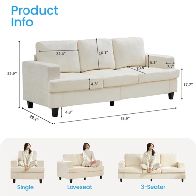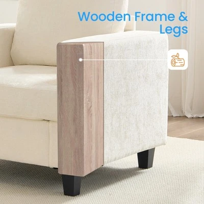 - 【Sturdy and Durable】 The interior frame is made of solid wood and metal to stand the test of time. Wood legs are designed to make the sofa more stable and can easily hold up to 300 lbs/seat.