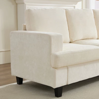 - 【Comfot Design】 The shape of this sofa has been meticulously designed, with 7.1″ wide armrest, sturdy soild wood legs, soft chenille upholstery and pocket spring cushions adding to the comfort and sophistication of the sofa.