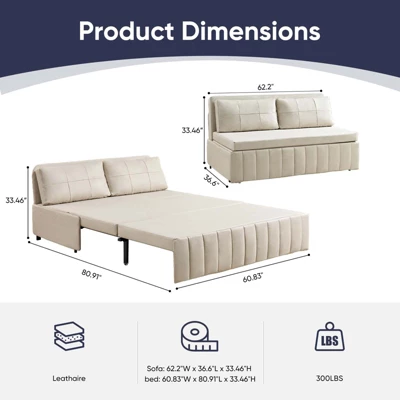 - Supreme Experience Come with a high-density sponge cushion with an ergonomic design, our Leathaire Fabric bed couch could effectively put your back and lumbar at ease and enjoy a good night’s sleep. By the way, the foam layer is specifically designed to breathe, allowing you to remain cool throughout the night.