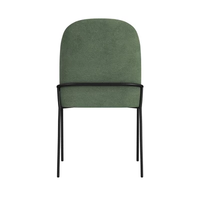 Our HomePop Modern Dining Chair offers a perfect modern seating solution for your dining room. The dining chair features a cushy seat and gentlry curved back for great comfort. The silhouette boasts clean lines and will fit well with your existing décor! This velvet dining chair with matte-black metal legs will be a staple at your dining table for years to come. Easy to assemble and maintain, spot clean only. Please note that fabric and wood colors may appear slightly different due to variations in lighting or screen settings.
