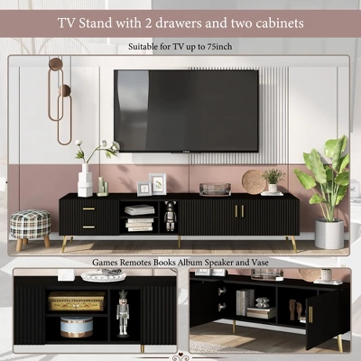 - [Two Drawers] The TV Stand comes with two drawers, perfect for storing remotes, manuals, and other small items.