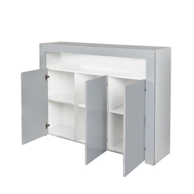 - 【With LED Lights】This sideboard comes with multi-color LED lights, 16 single colors and 4 color changing, the color of the display can be changed by the remote control. The unique design makes this cabinet a perfect fit with any decor.