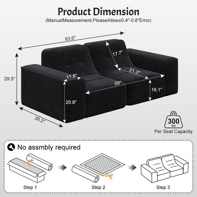 3-Seat Sofa Size: 83.6”W x 38.2”D x 29.5”H, 90.3 LBS.