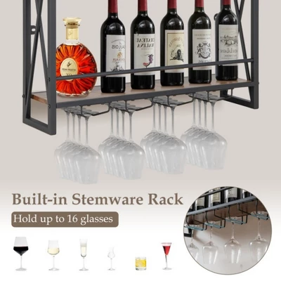 - Plentiful Storage Space: This wall mounted wine rack consists of 3 practical storage shelves for various items, including wine bottles, potted plants, decorations, etc. And, the built in stemware rack can hold up to 16 glasses of different heights.