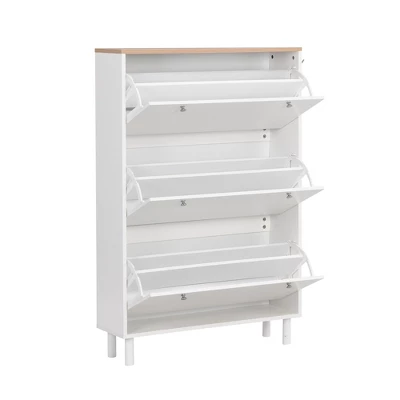 - 【Multiple Storage Capacities】It has 3 flip-top drawers that can hold up to 24 pairs of shoes, providing ample space for all your shoes. The open space below can be used to store slippers and other casual shoes. There are 3 hooks on the side to hang small items such as keys or wallet for easy access.