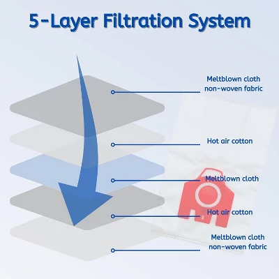 - Advanced Filtration: Equipped with a 5-layer micro plus filtration system, capturing particles as small as 0.3 microns — effectively reducing dust, pet dander, and pollen in your home.