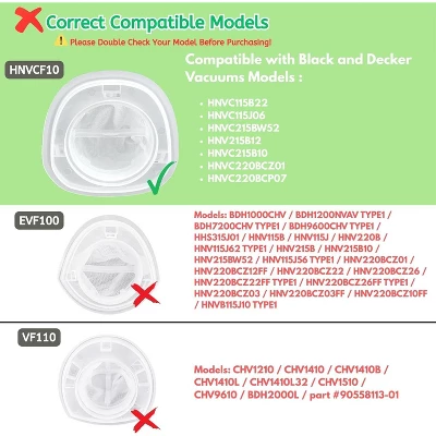 - Nispira filter compatible with BLACK+DECKER Handheld Vacuum, Fit for Models HNVC220BCP07 HNVC215BW52 HNV215B12 HNVC215B10 HNVC115J06 HNVC115B22.