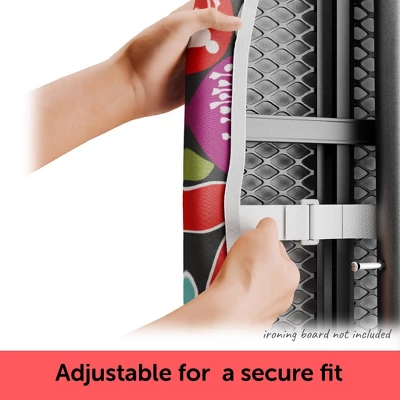 - EASY and SECURE FIT. A tailored nose pocket for a snug fit on your ironing board up to 15″ x 54″ (38 x 137cm). A strong elastic edge and two straps hold the cover securely for a smooth, wrinkle-free surface, reducing ironing effort.