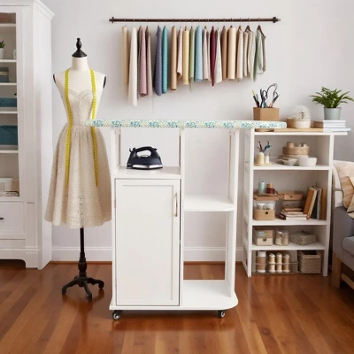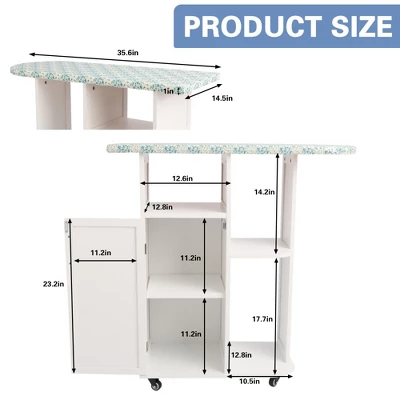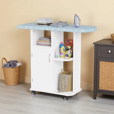 This solid wood folding ironing board with storage cabinet is the perfect blend of functionality and style for small spaces. It comes with wheels for easy mobility, and features a heat-resistant sponge surface for safe and efficient ironing. When not in use, it folds down neatly to save valuable room space. The built-in cabinet provides extra storage for laundry essentials, keeping your area organized and clutter-free. Its antique white finish adds a touch of elegance, making it ideal for laundry rooms, apartments, or compact homes.